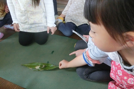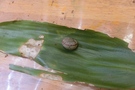 無事 葉っぱのおうちに戻ってこられたカタツムリ。