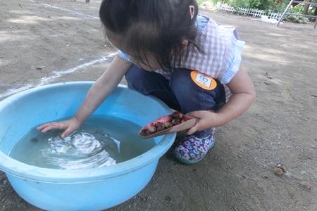 ダンゴ虫を見つけた子ども。