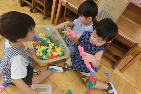 幼稚園の そこここで 繰り広げられている。