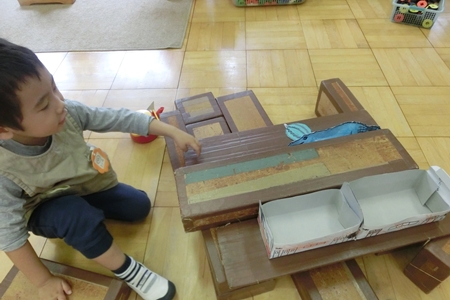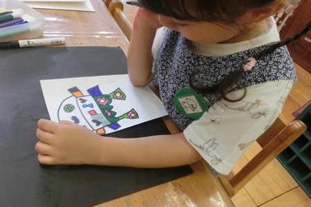 働く車を作る女児。