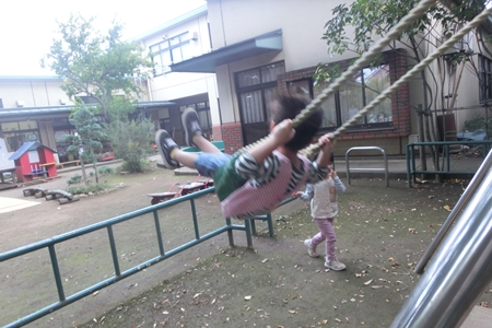 幼稚園のお庭は おもしろい。