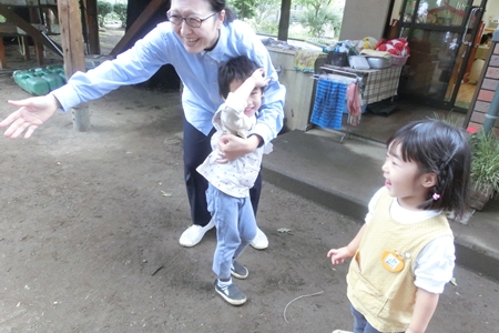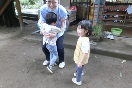 よしこ先生の腕の中。