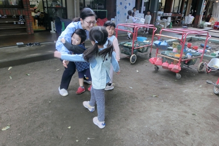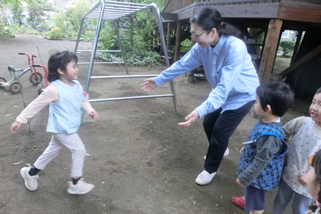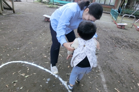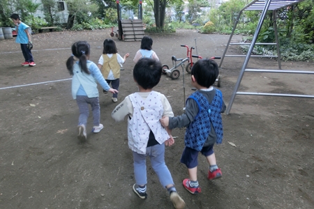 幼稚園のお庭に よーいどん!が聞こえる。