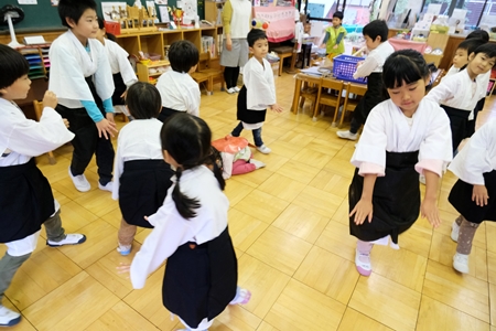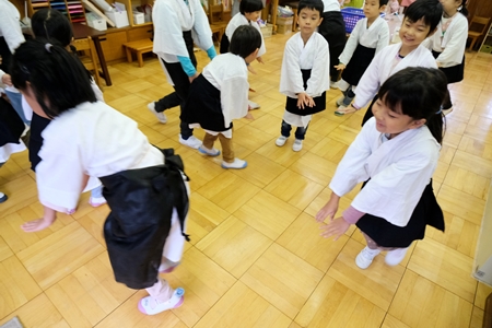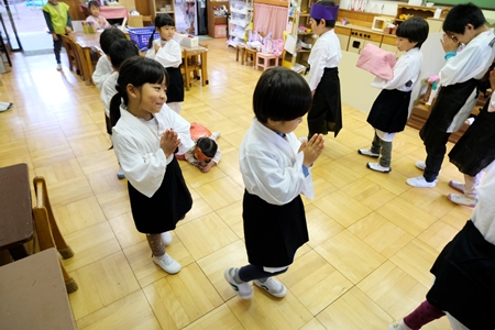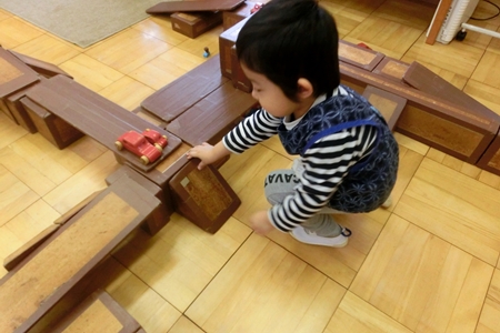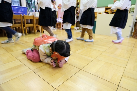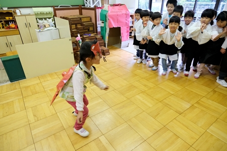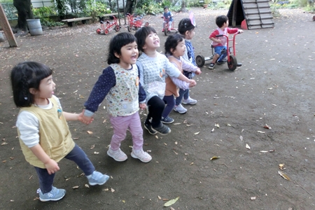 幼稚園にやってくる。