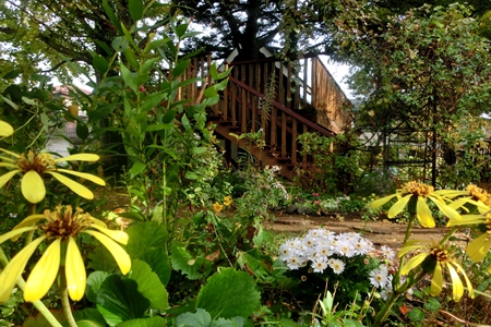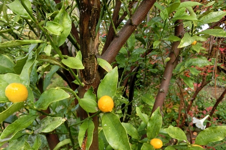 降り始めた落ち葉の庭を行く 嬉しさ。