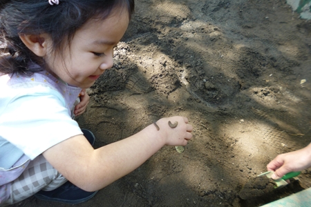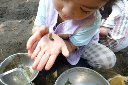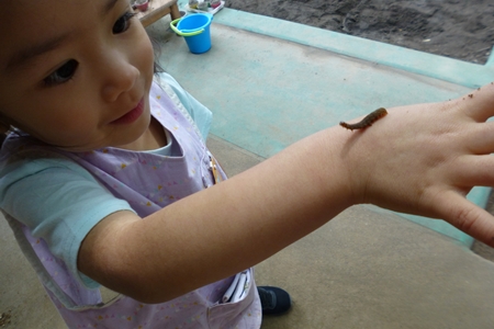 幼児にとっては 虫も仲間。