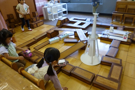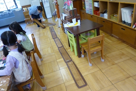 少し積み木を並べておく。