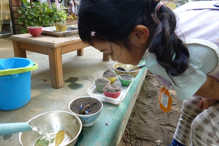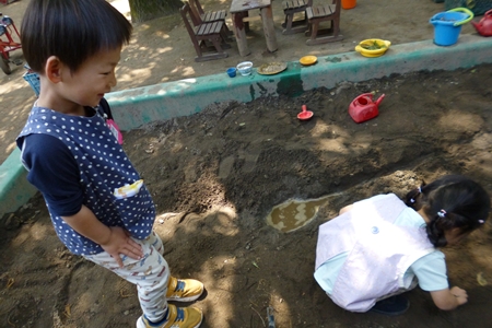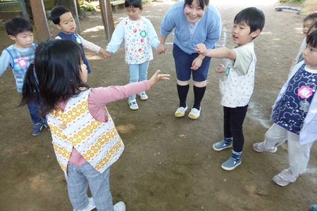 担任は お庭とお部屋を行ったり来たり。