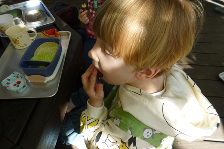一生懸命食べる子ども。