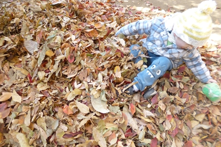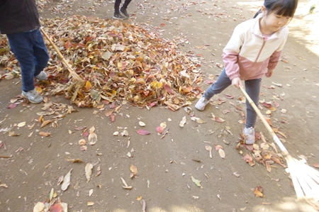 散り敷いた落ち葉を集め