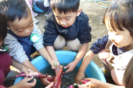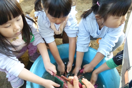 一生懸命洗ったお芋に