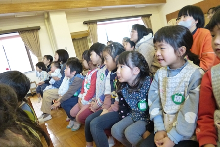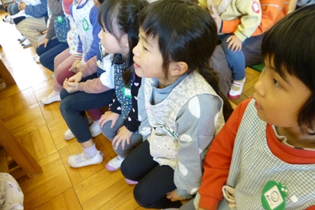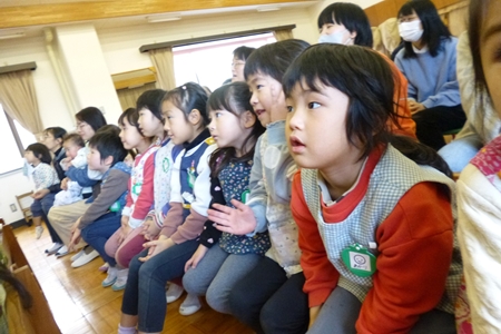 ♪びっくり箱 にびっくりする子ども。