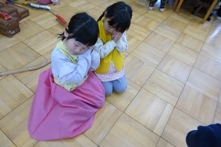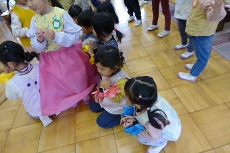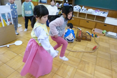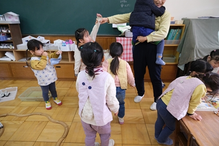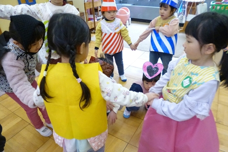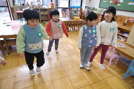 先生と手をつないで歩いたり