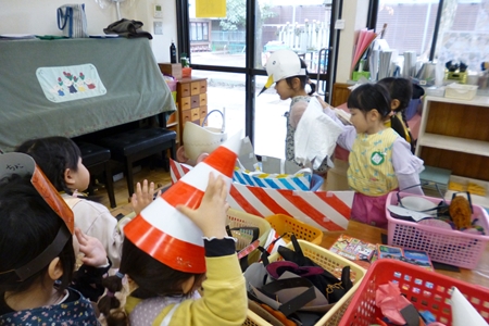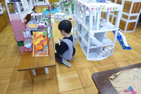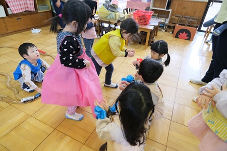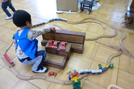一緒に積み木やおままごとを片づけたり