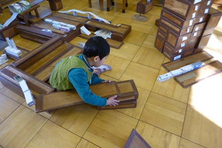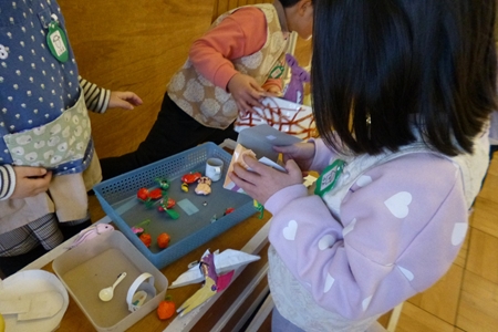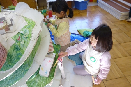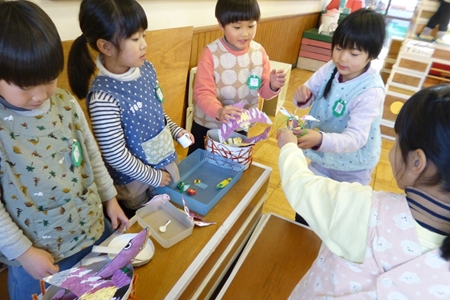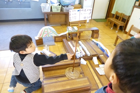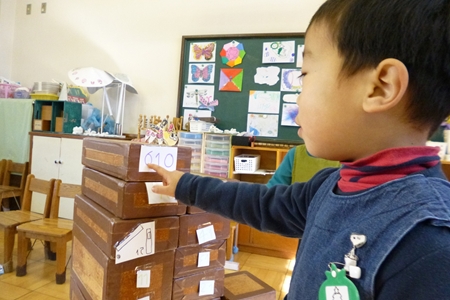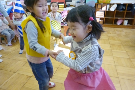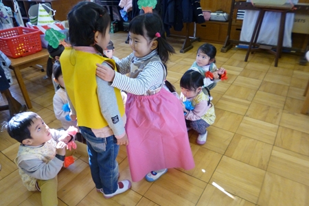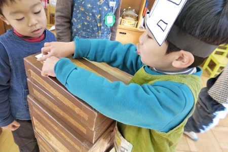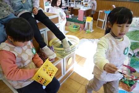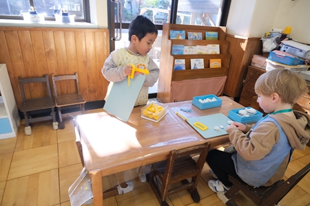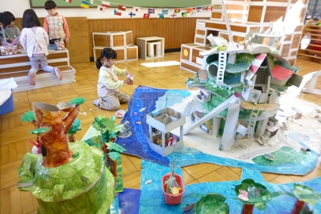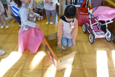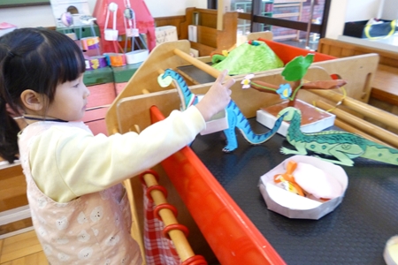 山さんたちは積み木のお部屋へ。