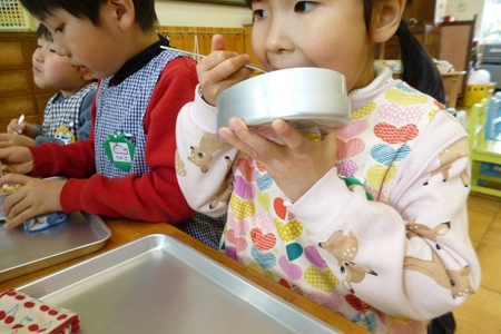 おいしいおいしいと 入っていく。