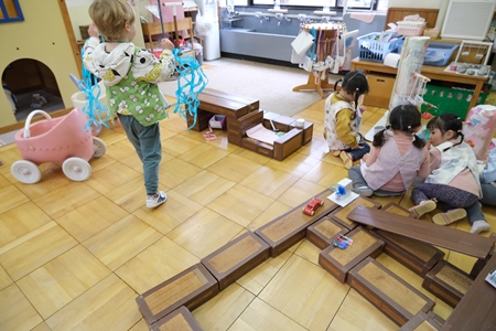 友達同士創意工夫しながら 遊びが継続する。