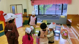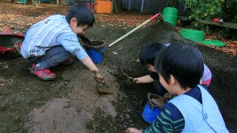 冬隣の幼稚園 2015.11.25 2015 11/25 2015年11月25日 冬隣の幼稚園 2015.11.25 お花先生、 園芸サークルで大忙し。 だから、 今日のブログは 昨日から。 落ち葉の園庭。 朝の子どもたち。 それぞれの遊びが始まる。 あっ転んだ! 親切なちょうちょさん。 地下室工事が 本格的になってきた。 がんばる 工事のおじさんたち。 イチョウ屋さんも お仕事 おしごと。 落ち葉がどっさりあると こんな遊びもできる。 落ち葉たちは 自然幼稚園の 晩秋の教材だ。 砂と水も 教材。 今日は暖かくて嬉しい。 きりんさんが はりきっている。 お店屋さんも はりきっている。 おむすびころりんも 始まる。 小道具 大道具が増えて 充実する 劇遊び。 海さんだもの、 友だち同士 意見を出し合って、 昨日より今日、 今日より明日 と 表現が豊かになっている。 小春空が 子どもたちを お庭に誘い出す。 日溜りの子どもたち。 一緒にいるだけで こんなに嬉しい。 こんなに、 こんなに、 こんなに 嬉しい。 ヒーローたちも ちょうちょさんたちも、 こんなに 嬉しい。 暑くもなく 寒くもなく、 こんなに こんなに 身体が動く。 こんなに こんなに。 風もないのに 葉っぱが落ちるのが、 こんなに 嬉しい。 あ、まだやっている ♪びっくり箱♪。 葉っぱの中から 飛び出すしかけは 今しかできないもの。 見上げる子ども。 見下ろす木々―――。 そして 寒空の今日。 6人きょうだいの双子たちにも コートが。 人間の子どもたちにも コートが。 寒くても早朝出勤、 工事のおじさん。 危なくないよう、 シャベルを下向けにする配慮。 あ、仲間のおじさん。 さあ、今日もがんばろう! ねずみさんのお家の クリスマス。 昨日から作っていたツリーが こんなに素敵になった。 「おはようございます」 うすをもって登園の ねずみさん。 お庭では 工事の仲間が 増えてきた。 三輪車は 落ち葉の上を走る。 だって、いい音がするんだもの。 走るのだって 落ち葉の上。 ちょうちょさんも 落ち葉の上。 あら、 どうしたの? ああ、誰か代わって って 待っているのね。 あ、代わってくれた! ああ、2人乗りがいいの。 あっ代わってくれた! 「ありがとう!」 嬉しいこと。 「銀色のがあるわよ。乗る?」 「うん!ありがとう!」 「えらいわねぇ」 2人のいいお顔。 嬉しい朝。 海の組のジオラマが もっともっと広がって、 こんなに素敵になった。 丸広百貨店の遊園地まである。 自分の手が こんなによく動くようになって どんなに嬉しいだろう。 お友だちが手伝ってくれて どんなに心強いだろう。 海さんたちは 幼児期の青春時代を 迎えているのだ。 川さんたちも それぞれが いいことを考えて 遊んでいる。 熱中の輪が だんだん広がって、 もっともっと 広がって、 もっともっと広がってきた頃、 お2階のホールで 始まったのは 小さいリズムようちえん。 お母さまと一緒に 身体を動かす。 お母さまが楽しいと 子どもも楽しい。 子どもが楽しいと お母さまも楽しい。 だって、母と子は 一心同体なんだもの。 身体が動くと 心が動く。 心が動くと 身体が動く。 心と身体をたくさん使って、 ああ おもしろかった! その頃、 お庭では たき火。 ♪ひのこパチパチ おこりんぼう おこらすな おこらすな ひのようじん ひのようじん♪ 雨がポツポツしているから 今日はおいもが焼けないのだ。 ああ、明日は小春空になるといい! そう思う、冬隣の幼稚園―――。 t.youchien おにはそと!おにはそと! 小さい人たちのために鬼もこなす山の組。 豆まきの写真600枚、選ぶの大 【問題】何を作っているでしょう? 明日の幼稚園で欠かせないアレです。 お楽しみに。 ふふふふふ お休みしていた仲良したちが登園! みんな嬉しい幼稚園。 一緒に考え、共感し、折り合って遊ぶ子ども 長い、長〜〜〜いヘビ。 できあがったら、いろんなところに出かけよう。 「細いところに入れるよ!」 こんこんこ山は 雪ふりだ はととすずめの 雪がっせん ぽっぽっぽ! ちゅんちゅんちゅん! 身 昨日・今日でさらにパワーアップの、2階建てレストラン🍽️ 年長児を中心に、小さなものも粘り強く作り 作る、作る、作る子どもたち。 ボールを、電車を、人形を、お豆の箱を作ります。 お友だちの手伝いも ♪まりつきトン♪が止まらない。 神経を研ぎ澄ませて、「はずんでトン!」。 わぁ、Rくん600回! ♪グスタフス・スコール♪ に ♪すずめ♪ 外はぴゅーぴゅー寒いけど、お部屋のリズム遊びはいつも Instagramを開く 保育ドキュメンテーション 保育 こちらもどうぞ 動く心 動かない心 幼稚園のドキュメンテーション ここにあり 満足が 子どもたちの冬支度 2016.11.09 高階幼稚園@川越・ふじみ野 自己教育力を培う 豆まき豆まき 鬼は外 落ち葉と子ども いつもを豊かに 2016.09.28 高階幼稚園@川越・ふじみ野エリア
