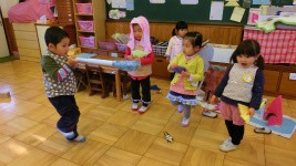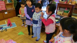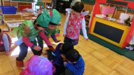 晩秋の共演 2015.11.27 2015 11/27 2015年11月27日 晩秋の共演 2015.11.27 幼稚園は 山茶花日和。 お母さまに結んでいただいた 髪が揺れる 朝の幼稚園。 本格的になってきた ピーターパンの続きが もう始まっている。 作り屋さんの いっしょうけんめいも もう始まっている。 工事のおじさんたちも 早朝出勤だ。 あ、きりんさんも 登園。 川さんたちの ピーターパン。 海さんたちにも 協力を仰ぐ。 海さんたちは 自分たちの生活をしながらも だったらもっと 面白くしよう と、 工夫に 工夫を 重ねている。 川さんたちは、 サイレンカーにするのか バスなのか、 電車なのか キャンピングカーなのか、 さっきからもめている。 「幼稚園はトクベツだから みんな一緒でいいんじゃない」 ということになったらしい。 おねこさんも乗っている。 池の組から 聞こえてくるのは、 あの誕生会の ♪牛若丸♪だ。 ♪京の五条のはしのうえ だいのおとこの 弁慶は ながいなぎなた ふりあげて 牛若めがけて きりかかる 牛若丸はとびのいて もったおうぎをなげつけて こい こい こいと らんかんの うえにあがって てをたたく まえや うしろや みぎひだり こことおもえば またあちら つばめのようなはやわざに おにの弁慶 あやまった 勇ましい 弁慶と牛若丸。 次はあたし、次はぼく、と 続く、 続く 続く 昔語り。 きりんさんも 一心不乱。 牛若丸もピーターパンもいいけれど、 やっぱり あたしたちはプリキュアごっこ。 それぞれの生活が 重なり合いながら、 だんだん創りあげられる ピーターパンの物語。 積木のお部屋に 観客が。 人魚さんたちもスタンバイして、 ピーターパンの 始まり はじまり。 一人ひとりが お話の主人公。 大人たちも 覚えがあるに違いない。 子どもの頃、 きっと誰もが 自分でない何かになってみたい と 思っていた。 夢の世界に 生きていた。 子どもたちは、 生まれながらに うたうことや 踊ること、 ごっこをすることが 好きだ。 今、子どもたちは ピーターパンの国に住んでいる。 空を飛べる。 美しい人魚の島がある。 動物たちと遊べる。 インディアンや海賊と戦ったり、 恐ろしいワニと仲良しにもなれる。 大活躍の人生を 生きているのだ。 お弁当を食べると また元気になって 新しい思いつきが始まる。 晩秋のお庭で 落ち葉と遊ぶ人も。 葉っぱたちと遊ぶ 楽しさ。 自然幼稚園の 嬉しさ。 小春空と日溜りの温かさが みんなの心を 広く柔らかくしてくれる。 あっ! ああっ! 「葉っぱが降ってきた!」 「流れ星みたい!」 「ようし!」 「葉っぱと戦うぞ!」 天の高みから降り注ぐ 葉っぱたちと一緒に 心が躍る。 幼稚園の晩秋は 子どもと落ち葉の 共演だ―――。 t.youchien おにはそと!おにはそと! 小さい人たちのために鬼もこなす山の組。 豆まきの写真600枚、選ぶの大 【問題】何を作っているでしょう? 明日の幼稚園で欠かせないアレです。 お楽しみに。 ふふふふふ お休みしていた仲良したちが登園! みんな嬉しい幼稚園。 一緒に考え、共感し、折り合って遊ぶ子ども 長い、長〜〜〜いヘビ。 できあがったら、いろんなところに出かけよう。 「細いところに入れるよ!」 こんこんこ山は 雪ふりだ はととすずめの 雪がっせん ぽっぽっぽ! ちゅんちゅんちゅん! 身 昨日・今日でさらにパワーアップの、2階建てレストラン🍽️ 年長児を中心に、小さなものも粘り強く作り 作る、作る、作る子どもたち。 ボールを、電車を、人形を、お豆の箱を作ります。 お友だちの手伝いも ♪まりつきトン♪が止まらない。 神経を研ぎ澄ませて、「はずんでトン!」。 わぁ、Rくん600回! ♪グスタフス・スコール♪ に ♪すずめ♪ 外はぴゅーぴゅー寒いけど、お部屋のリズム遊びはいつも Instagramを開く 保育ドキュメンテーション 保育 こちらもどうぞ いい幼稚園とはどんな幼稚園か 自らの力を使って 今日が始まる 2016.11.10 高階幼稚園@川越・ふじみ野 自己充実のために 子どもの世界を生きる 高階幼稚園のアクティブラーニング つながり合う生活 こどもの中身を