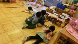 幼稚園のお友だちを 2015.12.03 2015 12/03 2015年12月3日 幼稚園のお友だちを 2015.12.03 お空が今にも泣きだしそうな 幼稚園の朝。 お友だちを待つ子ども。 「ごめんなさいね。 弟は今日 お風邪なの」 冷蔵庫で凍らせた 千日紅ケーキを見せてもらう。 昨日の午後の 焼いもの匂いが 嬉しい。 お友だち同士が 嬉しい。 お休みしていた お友だちに 「ひさしぶりだよね。 ひさしぶりのごきぶり!」 「えー!?ごきぶり!?」 「あっはっはっは!」 「ごきぶり ごきぶり!」 「ここはごきぶりの川!」 幼稚園には 大好きなお友だちが こんなに! ここにも、 ここにも、 お友だち。 ここにも、 ここにも。 お部屋には 牛若丸と 弁慶が。 この2人だって お友だちだ。 互いに高め合う お友だちだ。 お友だちの表現を見ると、 すばらしい!自分も! と思う。 お友だちの表現は 自分のやり方を決める 手がかりになる。 ピアノの音が 聞こえてくると、 自分も やらずにはいられないし、 見ずにはいられない。 誕生会の時の所作に 子どもたちが 工夫を加えて、 進化させているのだもの。 おもしろくて たまらない。 海さんたちのピアノは 少しゆっくりめ。 曲いっぱいを使って 表現できているのは、 身体を充分使えているからだ。 観客たちの身体も ついつい 動いてしまう。 池の組からは ♪きりんさん♪の曲が。 あ、 きりんさん。 きりんのお友だち同士が 悠々と遊んでいる。 見守るプリキュアたち。 歌声は 作り屋さんたち。 楽しそうな 池さんたち。 きりんさんの お食事。 「ぼくも食べさせる」 「かわいい かわいい」 池の組のお友だち。 うんと小さい人も一緒に入れて、 こんなことも。 リズム遊びが 止まらない 海の組。 仲良しも 止まらない。 川さんも一緒に 工事場だ。 ♪ドスーン ドスーン ドッスーン ガシャガシャ ガシャガシャ ザーッ♪ お砂場から帰ってきた 川さんたち。 熱心に遊ぶ 川さんたち。 仲良しの 川さんたち。 床屋さんの 鏡。 「わぁ!うつってるね!」 お友だちを見る この表情。 続く レスキュー隊ごっこ。 まだやっている ♪きりんさん♪。 楽隊も参加して 賑やかだこと。 和やかな 池の組。 あら、 工事場が始まった。 高いところの工事、すごいなぁ。 ドスーンドスーンって聞こえたから、 ぼくもやりたいって やってきた お庭の子どもも ザーッ! あ、 こんどは牛若丸。 毎日まいにち よく続くこと。 まだやっていない お友だちに 役を譲ってくれる えらい池さんたち。 どうしてこんなに えらいのか。 うーん、 似合う! やっぱりプリキュアの役より 適役だと思われる。 うーん、 牛若丸の方が ちょっと強いかも。 あ、 待っていたお友だちがやってきた。 あ、ここにも 待っていたお友だち。 幼稚園には 心のボールを投げ合える お友だちがいる。 一緒になって 高みを目指せる お友だちが いっぱいいるのだ。 この建物が幼稚園なのではない。 いいお友だちや いい先生がいてこそ 幼稚園なのだ。 本当にそうなのだなぁ―――! t.youchien おにはそと!おにはそと! 小さい人たちのために鬼もこなす山の組。 豆まきの写真600枚、選ぶの大 【問題】何を作っているでしょう? 明日の幼稚園で欠かせないアレです。 お楽しみに。 ふふふふふ お休みしていた仲良したちが登園! みんな嬉しい幼稚園。 一緒に考え、共感し、折り合って遊ぶ子ども 長い、長〜〜〜いヘビ。 できあがったら、いろんなところに出かけよう。 「細いところに入れるよ!」 こんこんこ山は 雪ふりだ はととすずめの 雪がっせん ぽっぽっぽ! ちゅんちゅんちゅん! 身 昨日・今日でさらにパワーアップの、2階建てレストラン🍽️ 年長児を中心に、小さなものも粘り強く作り 作る、作る、作る子どもたち。 ボールを、電車を、人形を、お豆の箱を作ります。 お友だちの手伝いも ♪まりつきトン♪が止まらない。 神経を研ぎ澄ませて、「はずんでトン!」。 わぁ、Rくん600回! ♪グスタフス・スコール♪ に ♪すずめ♪ 外はぴゅーぴゅー寒いけど、お部屋のリズム遊びはいつも Instagramを開く 保育ドキュメンテーション 保育 こちらもどうぞ 創造性を培うために 子育てのちょうどよさ 母の不安が子の不安に おいしいカレー幼稚園 お友達の力 新しい自分に 響きあう小さい人形劇 おいしい焼きいも幼稚園