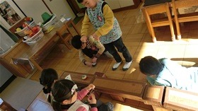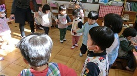 昨日の自分を越えるため 2019 1/25 2019年1月25日 寒い朝。 お庭が大好きな 小さい人たちも さっきから お部屋でガマン。 こんな日には 小さくたって お部屋で仲良く 考えて遊ぶのだ。 入園したばかりのひよこさんも お友だちの真似をして ガマンしてえらいこと。 川さんたちは いつものカラーペンに加え ペイントマーカーが 活躍している。 木にはこれが一番! 仕上がりに満足したら さっそく こま回し大会を始める。 こちらのお宅は 車でお出かけ。 信号は赤。 こま回しの 名人風(めいじんかぜ)を吹かせる 川さんたち。 それぞれが 技術を競って おもしろくてたまらない。 海さんたちのは 紐で回す。 ちょっと難しいのが たまらなくおもしろい。 作品の出来栄えにも こだわりたいのが 海さんたちだ。 それぞれが じっくり取り組んでいる。 池の組からは ♪カスタカチカチ♪が。 小さいお手々から いい音が響いている。 木の葉返し打ち。 小鳥鳴き打ち。 アルペッジョ打ち。 くぼみ打ち。 大きい人たちになったつもりで 満足 満足。 幼稚園のあちこちで 続けられているのは 昨日の自分を こえるための 一生けんめい ―――! t.youchien おにはそと!おにはそと! 小さい人たちのために鬼もこなす山の組。 豆まきの写真600枚、選ぶの大 【問題】何を作っているでしょう? 明日の幼稚園で欠かせないアレです。 お楽しみに。 ふふふふふ お休みしていた仲良したちが登園! みんな嬉しい幼稚園。 一緒に考え、共感し、折り合って遊ぶ子ども 長い、長〜〜〜いヘビ。 できあがったら、いろんなところに出かけよう。 「細いところに入れるよ!」 こんこんこ山は 雪ふりだ はととすずめの 雪がっせん ぽっぽっぽ! ちゅんちゅんちゅん! 身 昨日・今日でさらにパワーアップの、2階建てレストラン🍽️ 年長児を中心に、小さなものも粘り強く作り 作る、作る、作る子どもたち。 ボールを、電車を、人形を、お豆の箱を作ります。 お友だちの手伝いも ♪まりつきトン♪が止まらない。 神経を研ぎ澄ませて、「はずんでトン!」。 わぁ、Rくん600回! ♪グスタフス・スコール♪ に ♪すずめ♪ 外はぴゅーぴゅー寒いけど、お部屋のリズム遊びはいつも Instagramを開く 保育ドキュメンテーション 保育 こちらもどうぞ 嬉しい楽しい 幼稚園 子どもさながらの生活を 2017.05.08 おいしい幼稚園 力を引き出すリズミカルな生活 動く心 動かない心 毎日が新しい 2017.06.01 自然幼稚園の不思議 小さいお庭カフェの扉~明日は小さい人形劇~