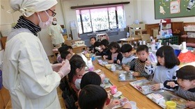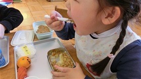 幼稚園のカレーの味 2019 1/30 2019年1月30日 今日は 嬉しいカレー幼稚園。 お料理サークルのお母様たちは 厨房で 腕によりをかける。 早くも いい匂いが漂い始める。 カレーを楽しみに 遊びを始める 海さんたち。 2月になったら 鬼が来るので いつもの生活にひとつ ”豆まき”が増える。 こまの遊びも 続いている。 昨日の遊びも 続いている。 キャンプでも カレーを作っている。 豆も 宇宙も お城も ごきげんさんだ。 たくさん遊んで おなかがすいて、 まってたカレー幼稚園。 「いただきます」 「ねぇ サイコウって言うんでしょ」 「サイコウ!」 「やっぱり言った!」 知らず識らず いつのまにか こんなにいい お友達になっていた 小さい池さんたち。 「おいしいね」 「おいしいね」 みんな なんていいお顔を しているのだろう。 「おかわり!」 「おかわり!」 よく食べる 池さんたち。 「ああ いい匂い!」と 川さんたち。 「幼稚園のカレーって ほんとにおいしいよね」 おいしい おいしいを 連発する子ども。 無言でほおばる子ども。 いろいろな人がいるけれど どの人も 無心で素朴。 いいお顔。 海さんたちの カレー幼稚園は あと2回だということを 知ってか 知らずか みんな思いきり味わっている。 ついこの間 年長さんになった、 そんな気がしていたのに ――。 お料理サークルの カレー屋さんたち、ありがとう。 母の味 幼稚園の味をありがとう―――! t.youchien 昨日の幼稚園はカレーの日! 子どもたちのための、特別なカレー。 カレー屋さん、ありがとう! 幸 「自由な遊び」の高階幼稚園、2学期終盤🍂 子どもたちと先生の生活も冬休みに入ります。 「おもしろ 強い風吹くお庭🌪️ だけども楽しい保育室🙂 お友だち・先生と二人三脚の、意欲を形にする毎日です。 楽しいかわいい人形劇🐧 人形劇団『こぐま座』のスペシャル公演です。 いいお顔の子どもたち。 そ 卒園に向けて絵を描き始めた、大きい人たち。 画用紙いっぱいに、思い思いに筆を走らせます。 創意工 黄色のじゅうたんを歩いて登園。 お父さん、力もち! 嬉しい気持ちで一日が始まります。 #幼稚園 やっぱり葉っぱ🍂 自然は友だち。 #幼稚園 #自由保育 #幼児期 #非認知能力 #園選び ∽∽ やってきました、やきいもの季節🍂🔥🍠 お芋を洗って、火を焚いて、焼き上がったらみんなで食べるのです チコちゃん人形がいなくなった! 小さい人たちのかくれんぼ。 あれ!?ここに誰かいる! 仲良しさ Instagramを開く 保育ドキュメンテーション こちらもどうぞ 幼稚園の教育環境 母と子の絆 創意工夫で 2017.06.28 自由な保育~幼児の将来を支えるもの 楽しい 雨の幼稚園 幼児の脳に有益な生活 園生活の復活 響きあう生活