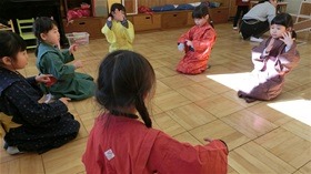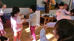 高階幼稚園の音楽教育 2019 2/13 2019年2月13日 ♪おえどにほんばし ななつだち はつのぼり ぎょうれそろえて あれわいさのさ♪ 高階幼稚園の お誕生会は おもしろい。 お母様と保育者とが 一緒になって つくり上げるからだ。 人形劇サークルこぐま座の くーちゃんたちと 子どもたちとの友情も ほほえましい。 お誕生会のステージでやっていた あれをやろう! これもやりたい!と 意欲みなぎる 子どもたち。 幼児にふさわしい教育は 「環境を通した教育」だ。 自然に恵まれたお庭、 砂場、 ぶらんこ、 すべり台、 大小の積木、 いろんな形のブロック、 粘土や紙、 はさみやペン、 たくさんの絵本。 いろいろな環境を用意し 整えておけば 子ども達は それらの環境に 自らかかわる。 それらを使って おもしろく遊ぶ。 けれど 音楽リズム、 ダンスや音楽劇などは、 そこに用意しておくことはできない。 保育者たちの表現力が 子どもたちの音楽リズムの生活の 環境になるのだ。 子どもたちは 歌うこと 踊ることが好きだ。 音楽劇の中で いろんな役を生きることが 好きだ。 保育者たちには リズミカルに美しく 動ける身体、 表現できる 柔らかな心が 要求される。 お母様だって同じだ。 我が子に いろいろを要求される生活だ。 その生活に リズムがあったら どんなに楽しくなるだろう。 保育者たちと一緒になって リズミカルに動ける心と身体を 獲得できたら 育児がっきっと 楽になる。 上手になる。 子どもたちのためと思っていた教育が 知らずしらずに 母親のための教育にもなっている。 教育はお互いだ。 高階幼稚園のお誕生会は 本当におもしろい。 子どもにとっても 大人にとっても ―――。 t.youchien 昨日の幼稚園。 小学生のオニヤンマがお手本になってくれます。 身の回りのすべてが教材。 幼児期 今日も力を合わせる子どもたち。 お魚のお池から道路がつながり、ぐるりと回る。 遠くへおでかけ、荷 お友だちと一緒に作ったお魚、バケツいっぱい🪣 いろんな力がぐんぐん伸びる、一生懸命な遊びの生活。 電車たちの世界が広がって、アイデア溢れる山の組。 作って、つなげて、また思いつく。 指先に神経が 嬉しいお弁当🍱🥪遊びの活力。 おうちの人がお弁当の姿で傍にいてくれるのです。 これで午後も元気い すてきなチョウに、ウサギに、魔女。 お絵描きの意欲が止まらない。 お腹が空いたら「はいたつ」をお 仲良しお兄さんたちの電車づくり。 小さい人の電車もかっこいいけれど、お兄さんの電車は今すぐ乗ってみ #誕生会 のあと、すぐに踊りたい♪春の舞扇、♪ブレッキング! 思わず「やってみたい!」となる誕生会 意欲の育つ、幼児期の生活環境。 それは没頭とお友だち! 一生懸命になって、関わり合って、深まる冬 Instagramを開く 保育ドキュメンテーション 保育 こちらもどうぞ 真の幼児教育を 一人ひとりの良さが 幼児教育の肝腎 子どもたちと 音楽劇 運動会再び 子どもは“日常”で育つ おいしいおいしい幼稚園 雨の日の幼稚園