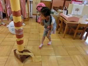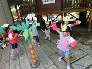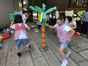 高階幼稚園の音楽教育 2019 6/20 2019年6月20日 くーちゃんたちも来てくれて 嬉しかった誕生会。 やろうやろう、ちびくろサンボ! 劇ごっこに使う道具が揃うまで リズム遊びして待っていよう! 臨機応変な海さんたち。 右だの左だの言わなくても 前に人に合わせる えらい海さん。 休憩は、お庭のブラックベリー。 次から次に 誕生会の演目が再現される。 子どものお星さまの すばらしさ。 大人にとって子どもたちこそ先生なのだと 実感する。 お花畑ステージでは 池さんたちのちびくろサンボが 始まっている。 小さい人たちにとって 真似することは おもしろい遊びだ。 大好きなホットケーキ。 きっと、それぞれのお母さまの味だ。 川さんたちも 劇のお面を作っている。 きらきら星変奏曲、宇宙のお城も お気に入りだ。 お花畑ステージや 保育室から聞こえてくる 音楽を聴きながら ごちそう作り。 あ、ホットケーキだ。 川さん参加で 海さんたちの劇が始まる。 表現することは おもしろい。 自分が持っている力を ここぞとばかりに 思いきり使うのだもの。 どんなに充実するだろう。 今は大人として 我が子を育てている。 お母さまやお父さまだって 少し前は子どもだった。 小さかった子ども時代に 童話の主人公や ヒーローやヒロインになって イメージの世界で 遊んだに違いない。 小さな子どもは 動物にだって 虫にだって 木や花や 風にだってなれる。 その役をするのでなく そのものになってしまうのだ。 おもしろくて おもしろくて おもしろくて 役を何度も交代し、 達成感を味わう。 そういう幼児の特性を生かし 幼児さながらの生活の中に 教育を入れていくのが 幼児教育なのだ。 お母さまと保育者が 互いに手を取り合い 二か月に一度の誕生会に 歌やダンスや音楽劇を ステージに乗せる。 そのおもしろさを 子どもたちが 自分たちの生活に 取り込んでいく。 保育者たちだけでなく、 お母さま方も 幼稚園の音楽教育を 担っているのだ。 こんな素敵な幼稚園、 他にあるだろうか ――ー! t.youchien おにはそと!おにはそと! 小さい人たちのために鬼もこなす山の組。 豆まきの写真600枚、選ぶの大 【問題】何を作っているでしょう? 明日の幼稚園で欠かせないアレです。 お楽しみに。 ふふふふふ お休みしていた仲良したちが登園! みんな嬉しい幼稚園。 一緒に考え、共感し、折り合って遊ぶ子ども 長い、長〜〜〜いヘビ。 できあがったら、いろんなところに出かけよう。 「細いところに入れるよ!」 こんこんこ山は 雪ふりだ はととすずめの 雪がっせん ぽっぽっぽ! ちゅんちゅんちゅん! 身 昨日・今日でさらにパワーアップの、2階建てレストラン🍽️ 年長児を中心に、小さなものも粘り強く作り 作る、作る、作る子どもたち。 ボールを、電車を、人形を、お豆の箱を作ります。 お友だちの手伝いも ♪まりつきトン♪が止まらない。 神経を研ぎ澄ませて、「はずんでトン!」。 わぁ、Rくん600回! ♪グスタフス・スコール♪ に ♪すずめ♪ 外はぴゅーぴゅー寒いけど、お部屋のリズム遊びはいつも Instagramを開く 保育ドキュメンテーション 保育 こちらもどうぞ 子どもたちの達成に 2015.11.09 子どもたちの 想像力 一生懸命はおもしろい 日常の力 今日も 運動会 人生の基を育てる 昨日の自分を越えるため 幼児教育の肝腎