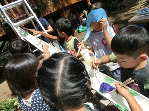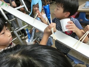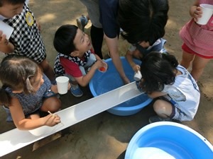 自由な保育 ~流しそうめんの巻~ 2019 9/10 2019年9月10日 ウルトラマンさんたちも きっとやりたい 流しそうめんごっこ。 今日はとても暑いので 夏休みの あの楽しさが復活する。 もちろん 海の組が中心だ。 作っておいた食べ物たちを ツリーハウスから流すのだ。 試行錯誤の末 ちょうどいい角度に。 流れ始めると 小さい人たちも次々にやって来る。 お水と一緒に流れてくる うそっこのそうめん、 ゼリーやお団子たちの おいしそうなこと! これはごっこなのだけれど みんな本気だ。 あの時 鍛えた腕前で タイミングよくつかみ取る。 うまくできた時の達成感。 失敗もするけれど がっかりしている暇はない。 次から次に 流れてくるのだから。 本当の食べ物ではないため、 難易度はお好みで調節。 本当に食べたくなっちゃった人も。 本当のは また夏休み。 来年のお楽しみ。 小学生になっても来てね ーーー! t.youchien おにはそと!おにはそと! 小さい人たちのために鬼もこなす山の組。 豆まきの写真600枚、選ぶの大 【問題】何を作っているでしょう? 明日の幼稚園で欠かせないアレです。 お楽しみに。 ふふふふふ お休みしていた仲良したちが登園! みんな嬉しい幼稚園。 一緒に考え、共感し、折り合って遊ぶ子ども 長い、長〜〜〜いヘビ。 できあがったら、いろんなところに出かけよう。 「細いところに入れるよ!」 こんこんこ山は 雪ふりだ はととすずめの 雪がっせん ぽっぽっぽ! ちゅんちゅんちゅん! 身 昨日・今日でさらにパワーアップの、2階建てレストラン🍽️ 年長児を中心に、小さなものも粘り強く作り 作る、作る、作る子どもたち。 ボールを、電車を、人形を、お豆の箱を作ります。 お友だちの手伝いも ♪まりつきトン♪が止まらない。 神経を研ぎ澄ませて、「はずんでトン!」。 わぁ、Rくん600回! ♪グスタフス・スコール♪ に ♪すずめ♪ 外はぴゅーぴゅー寒いけど、お部屋のリズム遊びはいつも Instagramを開く 保育ドキュメンテーション 保育 こちらもどうぞ 思いきり生きる 2016.01.21 自分を越えて 幼児教育を浸透させるために 幼稚園の心 小さいお庭カフェの扉~我が子との絆~ 今日も運動会 もうすぐおかたづけ 雨の日のごっこ遊び
