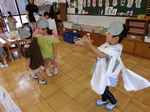 高階幼稚園の特別 2019 9/13 2019年9月13日 自然幼稚園に朝が来た。 今日も 新しい一日が始まる。 そして今日も 誕生会の歌やダンス 音楽劇ごっこの続きが あちこちで始まった。 高階幼稚園の誕生会は 特別おもしろい。 どうしておもしろいか。 お母さまがたと保育者たちが 一緒になって身につけたリズム遊びを ステージに乗せるからだ。 まるで子どものように夢中になって リズミカルに歩いたり跳んだり 走ったりする。 堅い言葉で言えば 幼児のための音楽教材。 子どもの心と身体を育てるためのものだ。 だからとても素朴でシンプル。 幼児のものだからちょっと見に 簡単そうに思えるのだけれど いざ動いてみると 自分の手足が 思い通りに動かなかったりする。 そういうわけで 誕生会の前に ちょっとした練習をする。 これがとても面白い。 恥ずかしがりお母様も つい 夢中になって 素の自分が現れる。 それがいいのだ。 リズム遊びを身につけると いいことがたくさんある。 我が子との生活が楽しくなる。 子も母もくたびれる夕方などは特に 霊験あらたか。 リズム遊びを使えば 叱る生活とさようならだ。 もっといいことがある。 誕生会のステージを 我が子たちが こんなに喜ぶことだ。 自分たちもやりましょうと 真剣に見入る 子どもたちの姿に感動する。 誕生会がそのまま 子どもたちの遊びのひとつに加わる。 自分たちの一生懸命が 幼稚園の子どもたちの 生活になるのだ。 一人ひとりの育ちに繋がるのだ。 なんと嬉しいことだろう ーーー。 t.youchien 昨日の幼稚園はカレーの日! 子どもたちのための、特別なカレー。 カレー屋さん、ありがとう! 幸 「自由な遊び」の高階幼稚園、2学期終盤🍂 子どもたちと先生の生活も冬休みに入ります。 「おもしろ 強い風吹くお庭🌪️ だけども楽しい保育室🙂 お友だち・先生と二人三脚の、意欲を形にする毎日です。 楽しいかわいい人形劇🐧 人形劇団『こぐま座』のスペシャル公演です。 いいお顔の子どもたち。 そ 卒園に向けて絵を描き始めた、大きい人たち。 画用紙いっぱいに、思い思いに筆を走らせます。 創意工 黄色のじゅうたんを歩いて登園。 お父さん、力もち! 嬉しい気持ちで一日が始まります。 #幼稚園 やっぱり葉っぱ🍂 自然は友だち。 #幼稚園 #自由保育 #幼児期 #非認知能力 #園選び ∽∽ やってきました、やきいもの季節🍂🔥🍠 お芋を洗って、火を焚いて、焼き上がったらみんなで食べるのです チコちゃん人形がいなくなった! 小さい人たちのかくれんぼ。 あれ!?ここに誰かいる! 仲良しさ Instagramを開く 保育ドキュメンテーション こちらもどうぞ ありがとう カレー幼稚園 子どもたちがいるから 2016.01.26 創意工夫の日々を 2016.06.28【川越市 高階幼稚園】 母子の生き生きしさ 2017.05.31 ありのままの自分が 雨のち輝き 影響し合う子どもたち 幼稚園の活躍