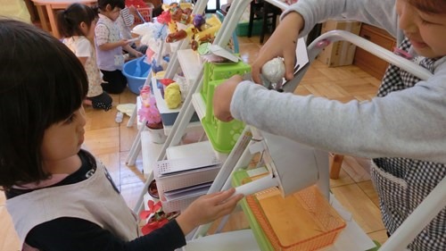 幼稚園のハーモニー 2019 10/29 2019年10月29日 海の組で続いている 川越まつりごっこ。 お店屋さんが立ち並ぶ。 白かと思ったら 金も出てきて喜ぶ子ども。 当たると商品がもらえるのだ。 このお店 当たりがよく出る人気店。 嬉しいから 購買意欲も高まる。 世の中も こうありたい。 山車に乗りたい 川さん 池さん。 110センチ以上の人は もう大きいから合格なのだそう。 嬉しい川さん。 110センチに満たない池さんは お囃子の役。 さっきから いい音が聞こえている。 お囃子に合わせ 獅子舞も始まる。 川さんたちも 遊ぶために作っている。 こうしたいと思った 自分のイメージに 近づけるため 先生の手を借りながら 一生けんめい。 海さんから帰ってきた川さん 110センチ!の報告。 海の組では ひょっとこ踊りも始まる。 お祭りを盛り上げるため それぞれが いろいろに活躍している。 輪投げもおもしろい。 入っても入らなくても 褒めてもらえる。 運動会のかけっこの時のような スタートライン。 小さい人たちに優しい。 世の中もこうありたい。 レストランえきの近くで j ポケモンゲット。 お花畑ステージには ヒーローたちが。 幼稚園はおもしろい。 幼稚園は嬉しい。 嬉しさが極まって 「だいすき!」 「だいすき!」 「だいすき だいすき」 「ママ だいすき」 嬉しくて 嬉しくてたまらない。 幼稚園は楽しい。 幼稚園はおもしろい。 幼稚園というところは お互い同士 響きあうところ。 一人ひとりの心と身体が 美しいハーモニーをつくるところ。 t.youchien おにはそと!おにはそと! 小さい人たちのために鬼もこなす山の組。 豆まきの写真600枚、選ぶの大 【問題】何を作っているでしょう? 明日の幼稚園で欠かせないアレです。 お楽しみに。 ふふふふふ お休みしていた仲良したちが登園! みんな嬉しい幼稚園。 一緒に考え、共感し、折り合って遊ぶ子ども 長い、長〜〜〜いヘビ。 できあがったら、いろんなところに出かけよう。 「細いところに入れるよ!」 こんこんこ山は 雪ふりだ はととすずめの 雪がっせん ぽっぽっぽ! ちゅんちゅんちゅん! 身 昨日・今日でさらにパワーアップの、2階建てレストラン🍽️ 年長児を中心に、小さなものも粘り強く作り 作る、作る、作る子どもたち。 ボールを、電車を、人形を、お豆の箱を作ります。 お友だちの手伝いも ♪まりつきトン♪が止まらない。 神経を研ぎ澄ませて、「はずんでトン!」。 わぁ、Rくん600回! ♪グスタフス・スコール♪ に ♪すずめ♪ 外はぴゅーぴゅー寒いけど、お部屋のリズム遊びはいつも Instagramを開く 保育ドキュメンテーション こちらもどうぞ 誕生会から遊びへ 紅葉を味わう いくつもの発見 2017.06.13 幼稚園の一生けんめい 幼稚園のお弁当 自由な保育~その育ち合い~ 子どもたちの力 2016.12.08 自然幼稚園~雨の保育室~