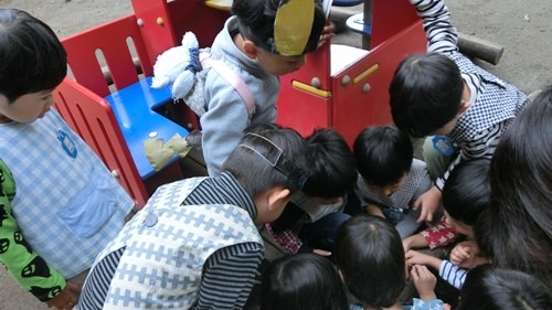高階幼稚園の魔法 2019 10/30 2019年10月30日 幼稚園のお池で見つけ お家で大事に育てていたヤゴ。 どうやら脱皮に失敗したらしい。 気の毒なほど 気を落とす川さん。 そこに出現した 幼稚園の魔法。 「これ ガ?」「セミ?」 「お顔があるよ」 「あ、思い出した!」 「これ ガだよ、 ずっと前ツリーハウスにいた!」 「なんとかスズメだ!」 「何スズメだっけ?」 名前が知りたくてたまらない。 お友達の名前は知りたいものね。 「あっ、これじゃない?」 「そうそう メンガタスズメだ!」 「でも色が違うね」 「寒くなったからコート着てるんじゃない?」 「フワフワだもん」 きっとそうに違いない。 「こうすると ちょうちょに見える」 「こうすると セミに見えるね」 メンガタスズメさん ありがとう! 気を取り直した川さん。 よかったことーーー。 t.youchien おにはそと!おにはそと! 小さい人たちのために鬼もこなす山の組。 豆まきの写真600枚、選ぶの大 【問題】何を作っているでしょう? 明日の幼稚園で欠かせないアレです。 お楽しみに。 ふふふふふ お休みしていた仲良したちが登園! みんな嬉しい幼稚園。 一緒に考え、共感し、折り合って遊ぶ子ども 長い、長〜〜〜いヘビ。 できあがったら、いろんなところに出かけよう。 「細いところに入れるよ!」 こんこんこ山は 雪ふりだ はととすずめの 雪がっせん ぽっぽっぽ! ちゅんちゅんちゅん! 身 昨日・今日でさらにパワーアップの、2階建てレストラン🍽️ 年長児を中心に、小さなものも粘り強く作り 作る、作る、作る子どもたち。 ボールを、電車を、人形を、お豆の箱を作ります。 お友だちの手伝いも ♪まりつきトン♪が止まらない。 神経を研ぎ澄ませて、「はずんでトン!」。 わぁ、Rくん600回! ♪グスタフス・スコール♪ に ♪すずめ♪ 外はぴゅーぴゅー寒いけど、お部屋のリズム遊びはいつも Instagramを開く 保育ドキュメンテーション こちらもどうぞ 小さいお庭カフェの扉~明日は小さい人形劇~ 響きあう子どもたち 小さいお庭カフェの扉~母と子の絆のために~ 育てることのおもしろさ 新しい自分に 幼稚園の鬼退治 育てる者として 2017.02.15 雨の日のリズム遊び