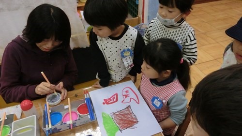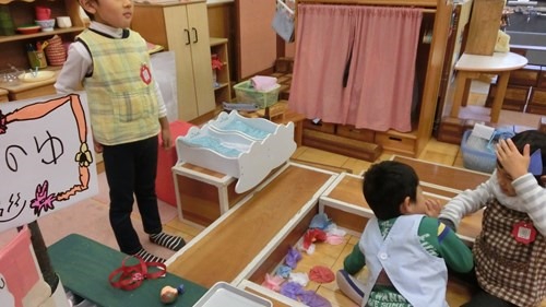自由な保育~達成するために~ 2019 11/29 2019年11月29日 雨粒の朝。 冷たいお手々が アルプス一万尺で暖かくなる。 日本古来の尺貫法で ずっと歌われているのがすごい。 海さんの 絵の具のポスターが素晴らしく 心が動いた川さんたち。 昨日の続きが もう始まっている。 昨日描いた作品に 満足 満足。 今日も描きたい川さんたち。 白と黒。 混ぜるとどうなるか 興味津々。 「あ、ウルトラマンの色だ!」 表現するのは面白い。 それぞれの作品を 興味深く見つめる 川さんたち。 熱中が始まる。 海さんの温泉にお客様が。 「いらっしゃいませ」 雨が上がり 縄跳びがしたい子ども。 ギターに合わせ 歌いながらリズミカルに跳ぶ。 小さな子どもたちは 跳んで跳んで 達成感を味わう。 ようし、次はもっと跳ぶぞ と 意欲に満ちるよう 保育者は思いきり身体を使う。 うっかり引っかかったって さっきの達成感が 次への意欲を高めるかき立てる。 そしてまた 新しい朝。 「おはよう!」 「おはよう!」 昨日別れたばかりなのに また出逢える嬉しさ。 ニット帽の花が 咲き始めたお庭。 葉っぱ風呂の いい匂い. 縄跳びが始まる。 思いきり身体を使いたい。 それぞれの思いが 幼稚園中に満ちてくる。 今日も達成に向かって 一生けんめい遊ぶのだ。 持って生まれた 自分の力を使って。 おもしろく もっとおもしろく もっともっと おもしろくなるよう 考えて遊ぶのだ。 心も身体も使って。 本当の楽しさは 苦しさを伴う。 だから育てる者たちは 苦楽しいのだと いつも言うけれど こんなに小さな子どもたちだって 達成するためには うんとがんばる。 そしてそれが楽しい。 子どもの世界のお風呂に 肩までつかって 大人たちよ頑張ろう ーーー! t.youchien 本日入園の人たちや、満3歳の人たち。 続く冬も、楽しい幼稚園。 風邪に気をつけてがんばりましょう 昨日の幼稚園はカレーの日! 子どもたちのための、特別なカレー。 カレー屋さん、ありがとう! 幸 「自由な遊び」の高階幼稚園、2学期終盤🍂 子どもたちと先生の生活も冬休みに入ります。 「おもしろ 強い風吹くお庭🌪️ だけども楽しい保育室🙂 お友だち・先生と二人三脚の、意欲を形にする毎日です。 楽しいかわいい人形劇🐧 人形劇団『こぐま座』のスペシャル公演です。 いいお顔の子どもたち。 そ 卒園に向けて絵を描き始めた、大きい人たち。 画用紙いっぱいに、思い思いに筆を走らせます。 創意工 黄色のじゅうたんを歩いて登園。 お父さん、力もち! 嬉しい気持ちで一日が始まります。 #幼稚園 やっぱり葉っぱ🍂 自然は友だち。 #幼稚園 #自由保育 #幼児期 #非認知能力 #園選び ∽∽ やってきました、やきいもの季節🍂🔥🍠 お芋を洗って、火を焚いて、焼き上がったらみんなで食べるのです Instagramを開く 保育ドキュメンテーション 保育 こちらもどうぞ 終わりが始まり(その2) 2016.10.13 高階幼稚園@川越・ふじみ野エリア いつも新しい 2017.05.25 「自由保育」という保育はない 自分を育てるもの 2016.09.20 通園バスを使わない良さ 高階幼稚園のバレエダンサーたち 幼稚園のごっこ遊び ~非認知能力を育むために~ 子育ての疑問を そのままにしないで!