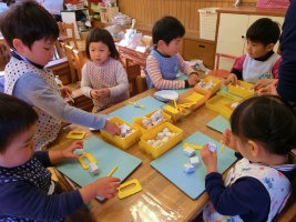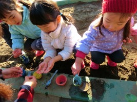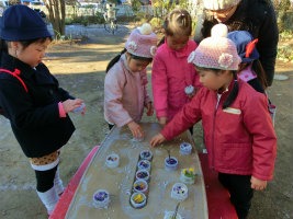 仲良したちの冬 2016.01.13 2016 1/13 2016年1月13日 仲良したちの冬 2016.01.13 新しい年がやってきた 小さい幼稚園。 清々しい気配。 冷たい空気。 ちょっと冷たすぎるけれど、 寒いからこその いいことが たくさんある。 あ、 鳥さんのお家、見ぃつけた! 氷のお花、見ぃつけた! 雪寄せ草(シモバシラ)の 不思議。 綿菓子みたい。 ああ、食べたくなっちゃった! 海さんが作った お花のジュース。 あ、凍ってる! アイスキャンディーになっちゃった! わぁー、きれい! おいしそう! 成功の喜び。 日陰の嬉しさ。 寒くても 冷たくても 子どもはお庭で遊びたい。 暖かくして お庭へ出る。 手は心。 先生のお世話が温かい。 嬉しい子ども。 いっしょうけんめい遊ぼう という気持ちになる。 金魚のお池の氷は こんなに いい氷。 冷たいけれど 満足感の方が大きい。 大きな氷が取れたら みんなに見せたくなる。 わぁー大きい! どこにあったの!? 金魚のお池だよ、きっと。 葉っぱも一緒に凍ってるもん。 わぁー、冷たい! 不思議な氷。 みんな 変なお顔! ぐにゃぐにゃしてるよ! パリンパリン! 小さい氷はいい音だね! 冷たいねぇ! おいしそう! つい かじりたくなるけど ガマン ガマン。 小さいお友だちにも 触らせてあげよう。 これあげる。 おいしいケーキ作ってね。 日向に置いたら 溶けてきちゃった。 日陰ひかげ! 氷は日陰が好き。 暖かい川のお部屋にも 氷に似た粘土が。 おでんや 焼き鳥、 ケーキに 餃子。 ああ、おいしそう! こちらは ヒーローごっこの準備か。 お庭へ出る準備の 池さんたち。 ヒーローだもの、 自分たちで支度するのだ。 穏やかな 池のお部屋。 いっしょうけんめいな お顔。 あ、 ♪お江戸日本橋♪が始まった。 みんな、 なんてかっこいいのだろう。 心も身体も せいいっぱい動かすのって なんて楽しいことなんだろう。 お友だちと一緒だもの、 楽しさが何倍にもなる。 牛若丸と弁慶の準備に 鼻だって かめる。 自分で かめる。 お母さまや先生に していただくように。 だって、 大きな声で歌うんだもの。 踊るのも 歌うのも 大好きだから、 代わり合って楽しい 池さんたちの エンドレス牛若丸。 お庭の霜が 溶け始めた。 氷のお花も もうすぐ消える。 事故車両も 自分たちで回復させ、 はりきる 小さい鉄道員たち。 静まりかえる海の組に 響くのは こま回しの修行の音。 工夫がおもしろい 海さんたち。 遊ぶための努力。 遊ぶための 協力。 あっ 違うか! 仲良したちの 冬。 おおらかな幼稚園―――。 高階幼稚園ファン(お母さま方からのお手紙) t.youchien おにはそと!おにはそと! 小さい人たちのために鬼もこなす山の組。 豆まきの写真600枚、選ぶの大 【問題】何を作っているでしょう? 明日の幼稚園で欠かせないアレです。 お楽しみに。 ふふふふふ お休みしていた仲良したちが登園! みんな嬉しい幼稚園。 一緒に考え、共感し、折り合って遊ぶ子ども 長い、長〜〜〜いヘビ。 できあがったら、いろんなところに出かけよう。 「細いところに入れるよ!」 こんこんこ山は 雪ふりだ はととすずめの 雪がっせん ぽっぽっぽ! ちゅんちゅんちゅん! 身 昨日・今日でさらにパワーアップの、2階建てレストラン🍽️ 年長児を中心に、小さなものも粘り強く作り 作る、作る、作る子どもたち。 ボールを、電車を、人形を、お豆の箱を作ります。 お友だちの手伝いも ♪まりつきトン♪が止まらない。 神経を研ぎ澄ませて、「はずんでトン!」。 わぁ、Rくん600回! ♪グスタフス・スコール♪ に ♪すずめ♪ 外はぴゅーぴゅー寒いけど、お部屋のリズム遊びはいつも Instagramを開く 保育ドキュメンテーション 保育 こちらもどうぞ 子どもの成長 大人の成長 目に見えない力が 2016.09.13 高階幼稚園@川越・ふじみ野エリア 挑戦と判断 母と子を繋ぐお弁当 幼稚園の感動 新しい自分を 2016.06.01【川越市 高階幼稚園】 今日も 運動会 秋の実りに思う