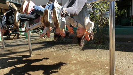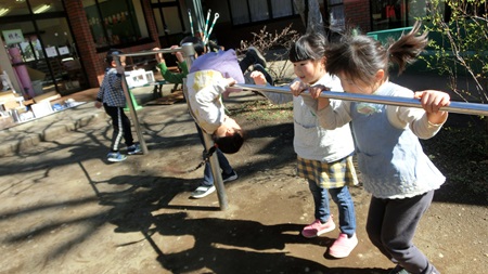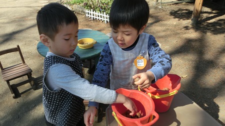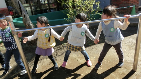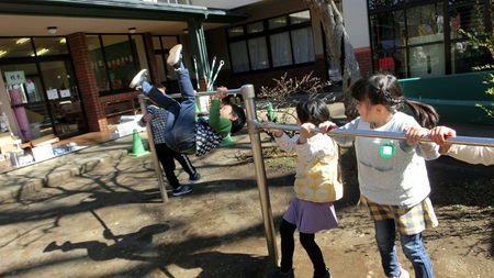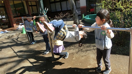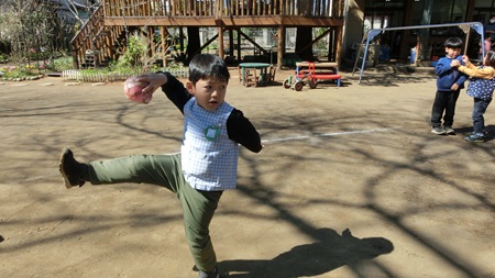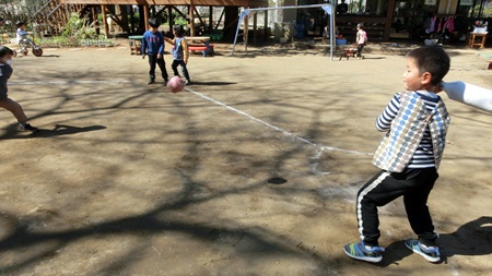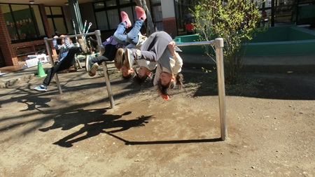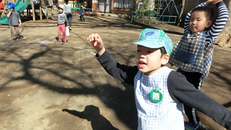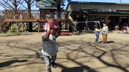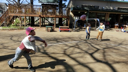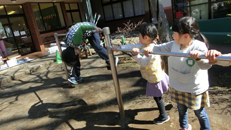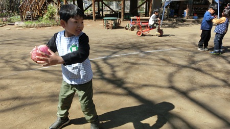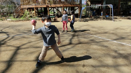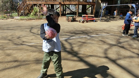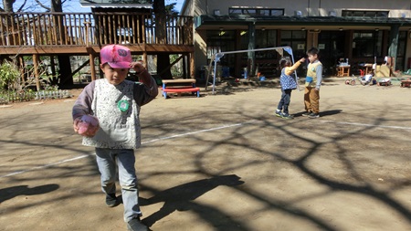 朝の園庭で