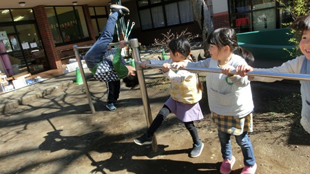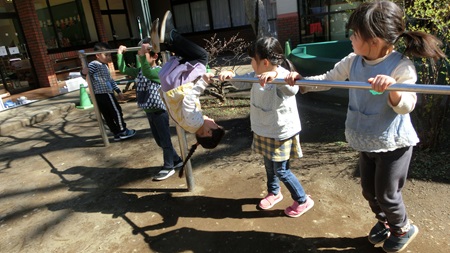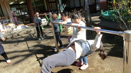 今日のステージは 鉄棒。