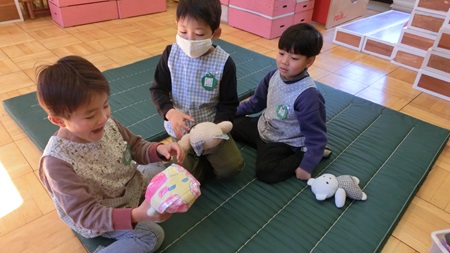 山の組のお部屋の タオル人形は