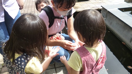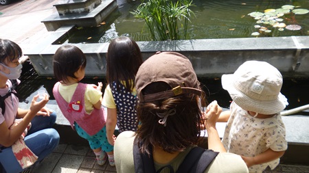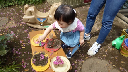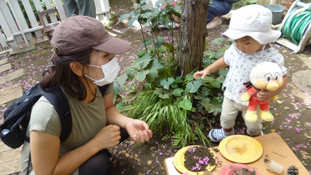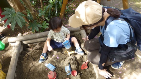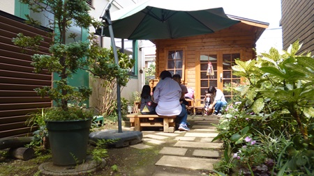 ちいさいおにわカフェの そここで思い思いに過ごす 母と子の