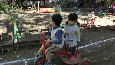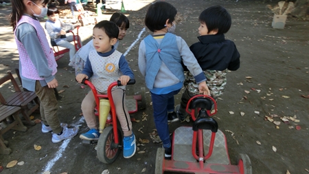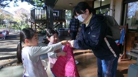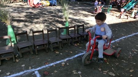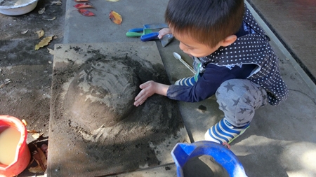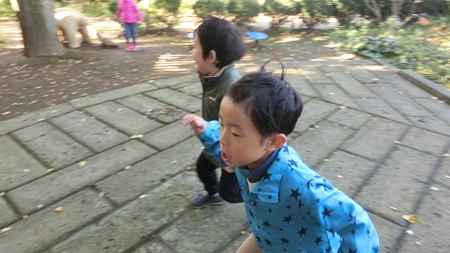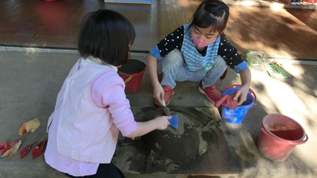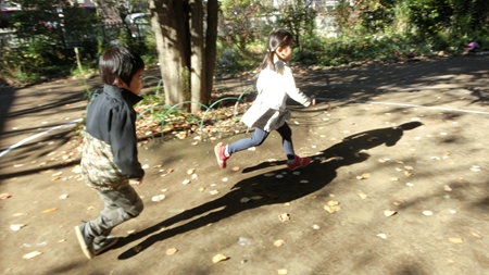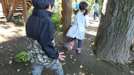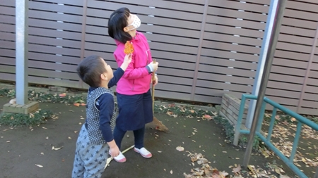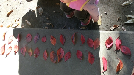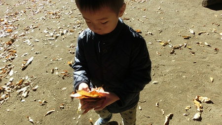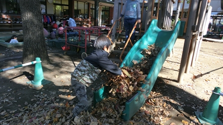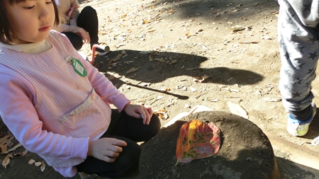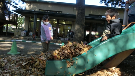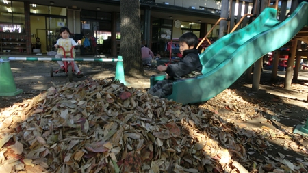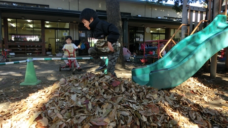 落ち葉を集めて 葉っぱのお池に飛び込む。