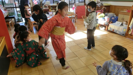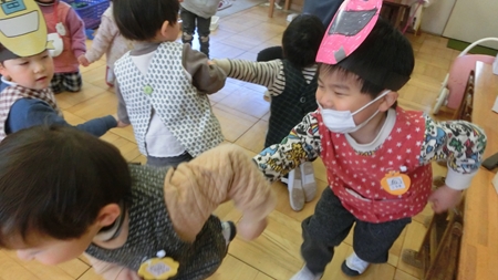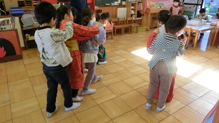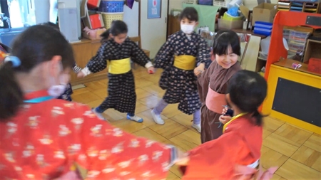 保育者たちの身体が リズミカルに動く
