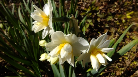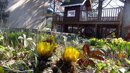 お庭の隅に咲く福寿草が 春を告げる。